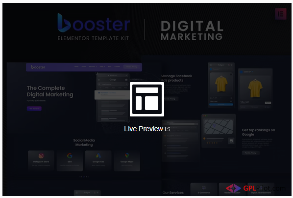 Booster is an Elementor Template Kit for quickly and easily creating websites for your marketing business using the Elementor Pro Page Builder plugin for WordPress. This is not a WordPress theme. Template Kits contain page content for Elementor page builder. This kit has been optimized for use with the free Hello Elementor theme but may be used with most themes that support Elementor.