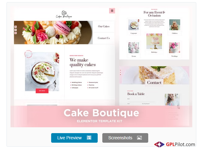 You can get Cake Boutique - Cake Elementor Template Kit here on a huge discount on individual purchase, If you buy GPLpilot membership then You can free download Cake Boutique - Cake Elementor Template Kit as well as You will get access to all the products (31141) free like WordPress, Woocommerce, Joomla, Drupal, Magento, Muse, Opencart, Prestashop, Shopify, Unbounce, Ghost, Tumblr, Virtuemart, Graphics, Html templates, Php script and more … free! We provide an automatic upgrade service for the wp plugin, GPLpilot provides 24/7 hour support by Email, Live chat, Whatsapp, Skype, as well as Phone Call support.