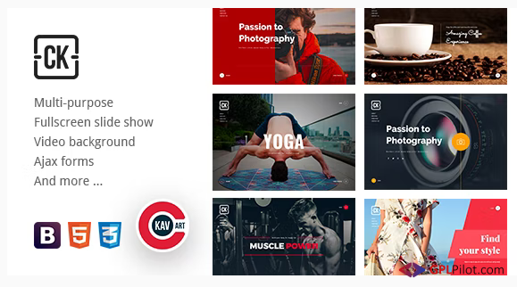 CK is a creative multi-purpose HTML Template with lots of features, variations and demos. CK come with a unique layout. CK is for everyone. It fits in all categories like Coming Soon, Maintenance, Product Launch, App Launch, Business, Agency, Hotel, Restaurant, Personal, Corporate, Gym, Fashion, Photography minimal site, news sites and many more, etc. It comes with a long list of features like fully functional Ajax form, Google map widget, Various background slideshow effects, HTML video and Youtube background, countdown clock and much more. It has a feature to integrate popular email marketing services with a subscription form. CK offers the option to choose your email marketing like MailChimp,