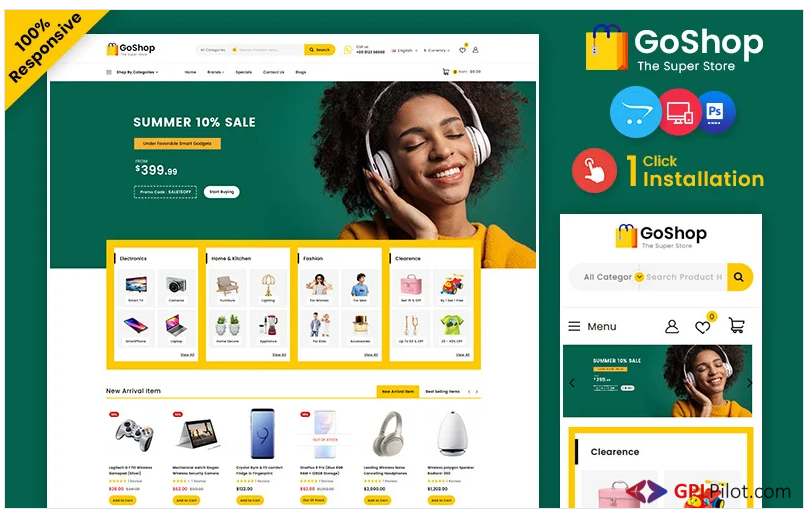 GoShop – Electronic Multipurpose Mega Store has all the required features we’ve design for any e-Commerce website need. Also, we’ve included a Quick-start package for easy install and open a new store in a minute.