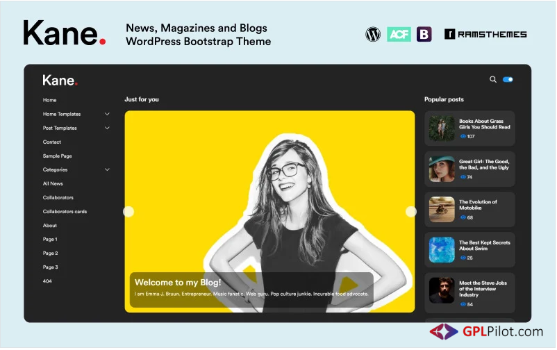 Download KANE - News Magazine Blog Bootstrap WordPress Theme HTML Template right now and set up your own High-End website in a matter of minutes.