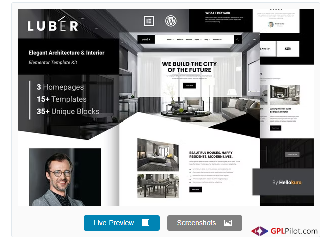 You can get Luber - Elegant Architecture & Interior Elementor Template Kit here on a huge discount on individual purchase, If you buy GPLpilot membership then You can free download Luber - Elegant Architecture & Interior Elementor Template Kit as well as You will get access to all the products (31141) free like WordPress, Woocommerce, Joomla, Drupal, Magento, Muse, Opencart, Prestashop, Shopify, Unbounce, Ghost, Tumblr, Virtuemart, Graphics, Html templates, Php script and more … free! We provide an automatic upgrade service for the wp plugin, GPLpilot provides 24/7 hour support by Email, Live chat, Whatsapp, Skype, as well as Phone Call support.