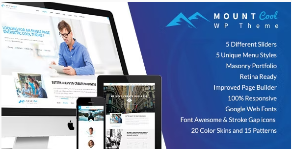 Mountcool an elegant and responsive one page WordPress theme. A perfect one page WP theme with a separate blog section suitable for product promotion, photographer, web design agency, event promotion, freelancer portfolio, fashion designer portfolio, and personal portfolio websites