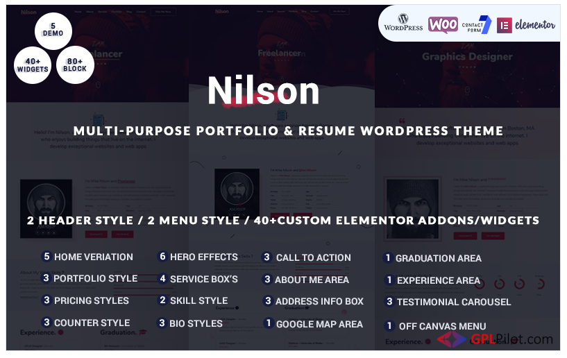 Nilson – Multipurpose Personal Portfolio resumes WordPress Theme is built with Elementor. This Theme is suitable for any Personal Portfolio business, companies, photographers, freelancers, developers who need a professional way to showcase their projects and services. Nilson is an extremely customizable and impressive look on tablets and mobile devices. Nilson has a Very User-Friedly CodesterFramwork which allows you to control your theme Options and Metaboxes. And We attached Friendly and well Theme Documentation to change theme options and the Elementor widget easily.