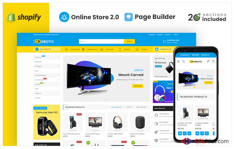 Robotics Electronics Sectioned Shopify Theme perfectly fits for stores selling Electronic Devices and Gadgets. Theme is responsive and user-friendly as all the customization settings are provided in the admin. It also fits for the other online stores selling Mobiles, Computer, Gadget, Peripherals, Network System, Accessories and other Multi Purpose.The theme needs zero coding knowledge to use. It has powerful user friendly features that would attract more clients to your online store and boost sales!