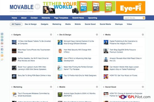 Movable is a unique premium WordPress theme from Theme Junkie with a design similar to news aggregation sites like Alltop. While it’s not an RSS aggregator, the theme features a custom homepage comprised of news widgets that can be moved, collapsed, and closed by visitors. The theme also features navigation management, custom widgets, built in ad management and many useful options in the backend control panel.
