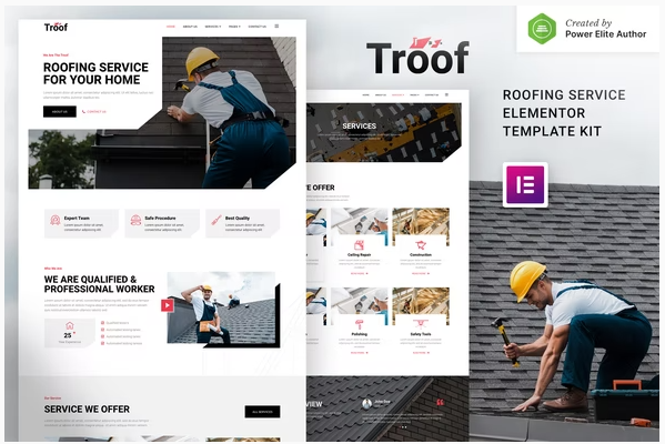 Troof is a modern and clean Elementor Template Kit that perfect for creating a website for Roofing Service Company, Construction, Handyman, Repair Service, Plumber, Electrician, or any home improvement and maintenance services. This template has a Modern and Unique design with a 100% responsive layout, retina-ready, and easy to customize.