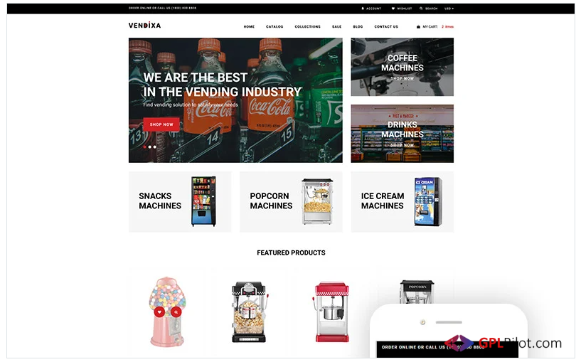 A vending machine is a great business tool that allows you to provide customers with products without direct contacts with clients. You can place a vending machine at any public place. It will be profitable in hospitals, metro stations, trade centers and so on. It can sell coffee, tea, soda drinks, chips, and other products. Yet, if you run a vending machine inline shop you have to create a client base. And the website will be a perfect tool for it. Vendixia is a Shopify website theme that has an attractive design, with many visual effects and elements. Moreover, you can edit a website with a simple drag and drop. It does not require coding skills. It also has a well-developed catalog that provides customers with an easy search. Vendixia has a blog and social options you can use to advertise your products and company. In addition due to full Shopify e-commerce pack Vendixia has a cart, wishlist, and currency option features. It will be your powerful tool for developing an online store. Moreover, you can use Vendixia to create a gadget shop or electronics shop too