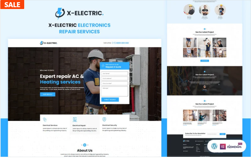X-Electric service is a collection of pre-made Elementor Landing Page Template, Designed for All Repair AC, Heating & Cooling Services, Air conditioning firms, Electrical Services, Electrical Repair, and Electrical Security services websites. The Template is a code-free, fully flexible website. You can use all copyright Images on your website. It is a well-designed template and allows you to edit the color of icons and text. It has a professional design with a fully responsive layout and is mobile-friendly.